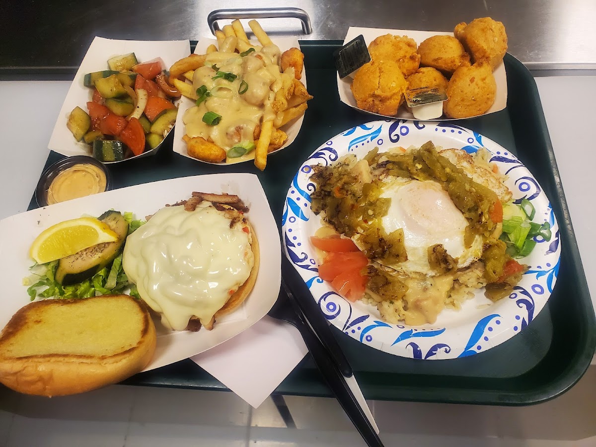The menu focuses heavily on seafood, from whole fried red snapper to white fish and shrimp tacos, alongside hearty bar-friendly options like the Pittsburger loaded with fries and slaw, and the indulgent High Country Poutine topped with cheese curds and pork belly gravy. Many dishes lean into bold, island-style seasonings—like the Tiki Rubbed Wings offering a lighter Cajun dry rub—and fresh ingredients that stand out without overpowering the palate. Portions are generous but not overwhelming, which makes it easy to explore multiple plates or share among friends.